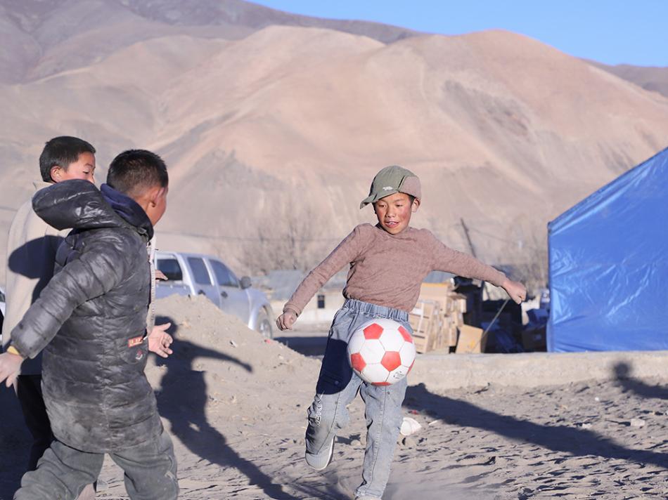 森嘎村,孩子們在踢足球。