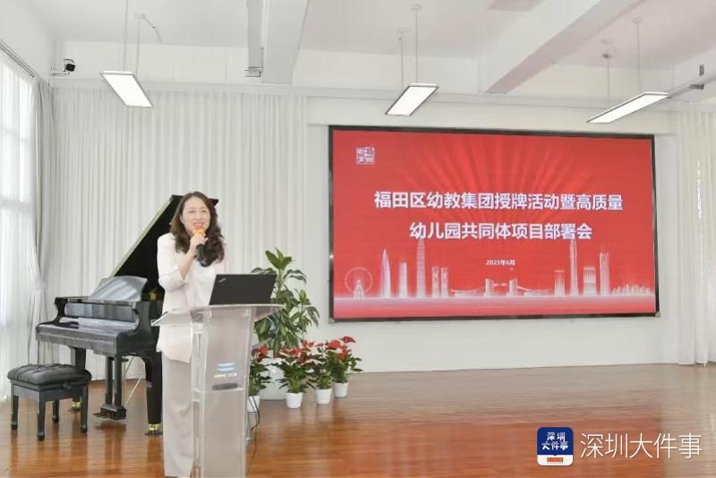 6月6日,福田區教育局在深圳市第二幼兒園召開福田區幼教集團授牌活動暨高質量幼兒園共同體項目部署會。會上8大幼教集團正式揭牌,并對3個廣東省高質量幼兒園共同體進行深度部署,全面推進學前教育高質量發展。