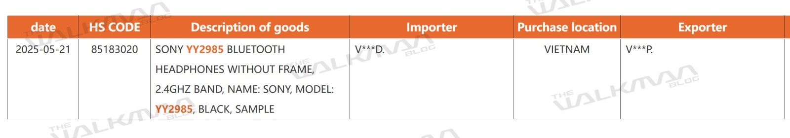 最新進口申報文件顯示,索尼正計劃進口到越南測試 WF-1000XM6(YY2985)耳機,并描述為“無框耳機”(Bluetooth headphones without [a] frame)。