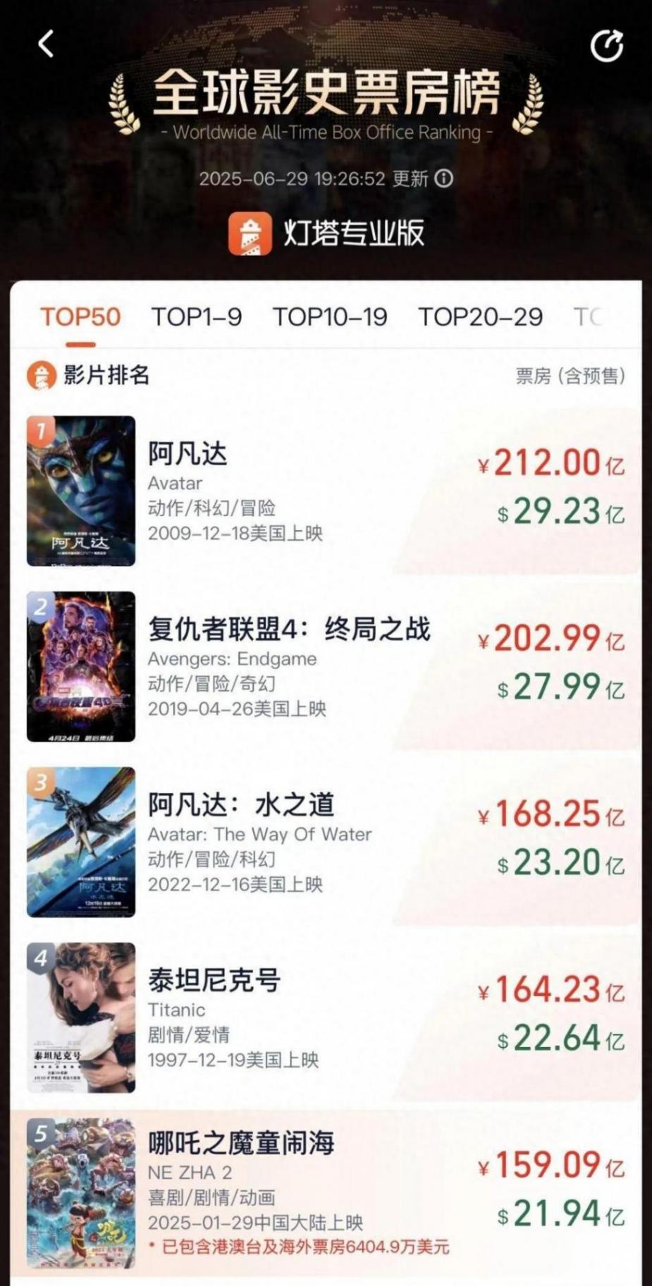 • 躋身全球影史票房前五,與《阿凡達(dá)》《復(fù)仇者聯(lián)盟4》等好萊塢巨制比肩