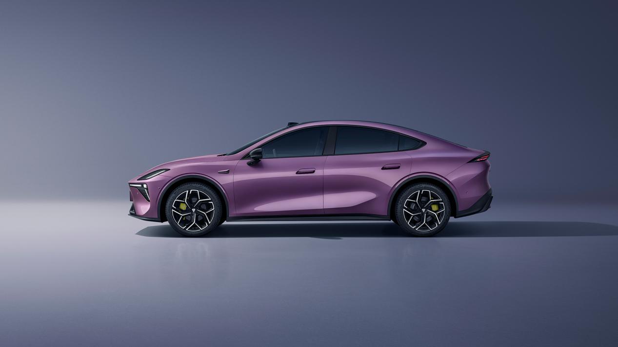 側面采用了轎跑式車身設計,配備了半隱藏式門把手以及無框車門。車身的長寬高分別為4830/1905/1480mm,軸距為2900mm。