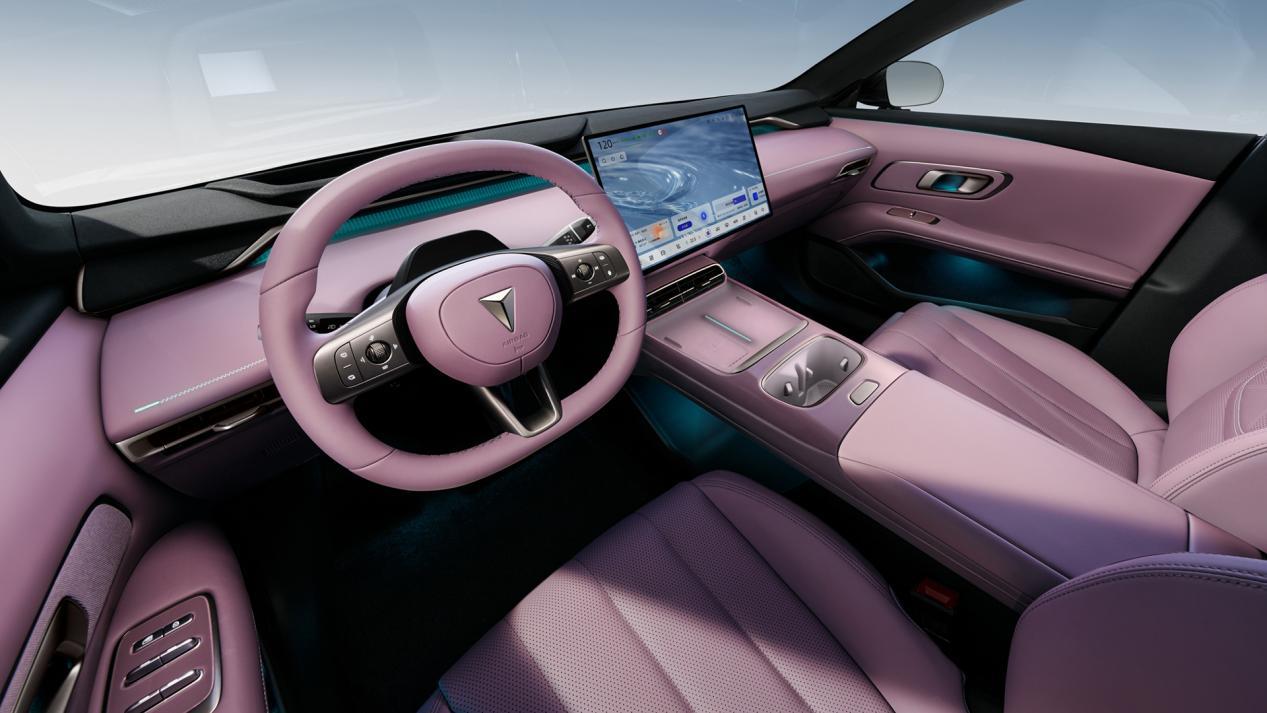 內飾采用了經典的 T 字形布局,整體較為簡約,中控臺并未配備傳統的儀表盤,取而代之的50英寸AR-HUD抬頭顯示系統,具有全息式增強現實功能。