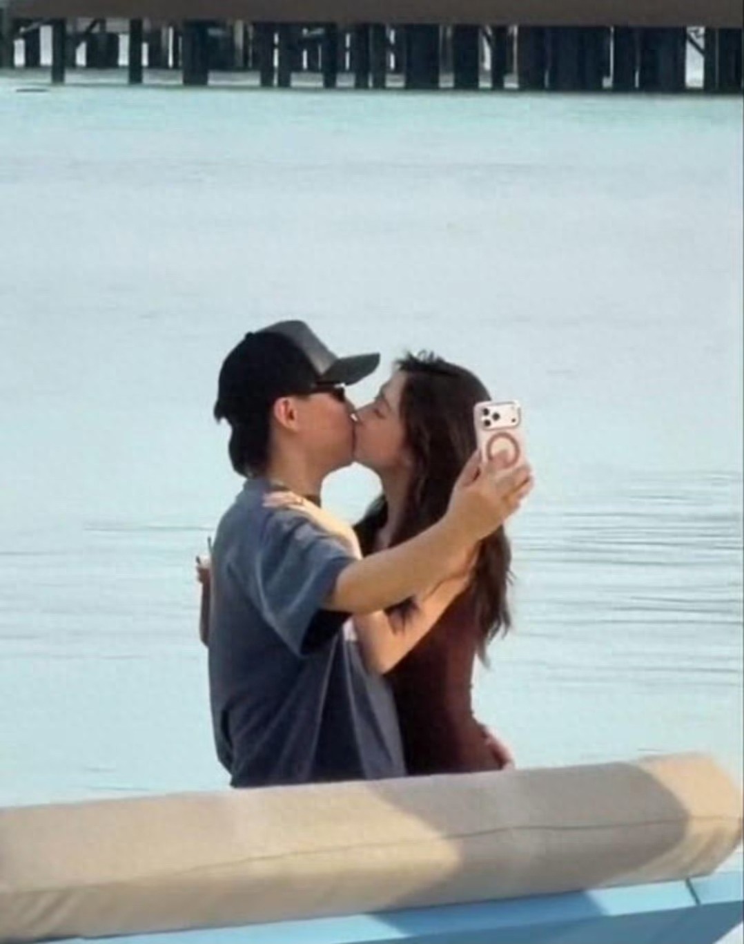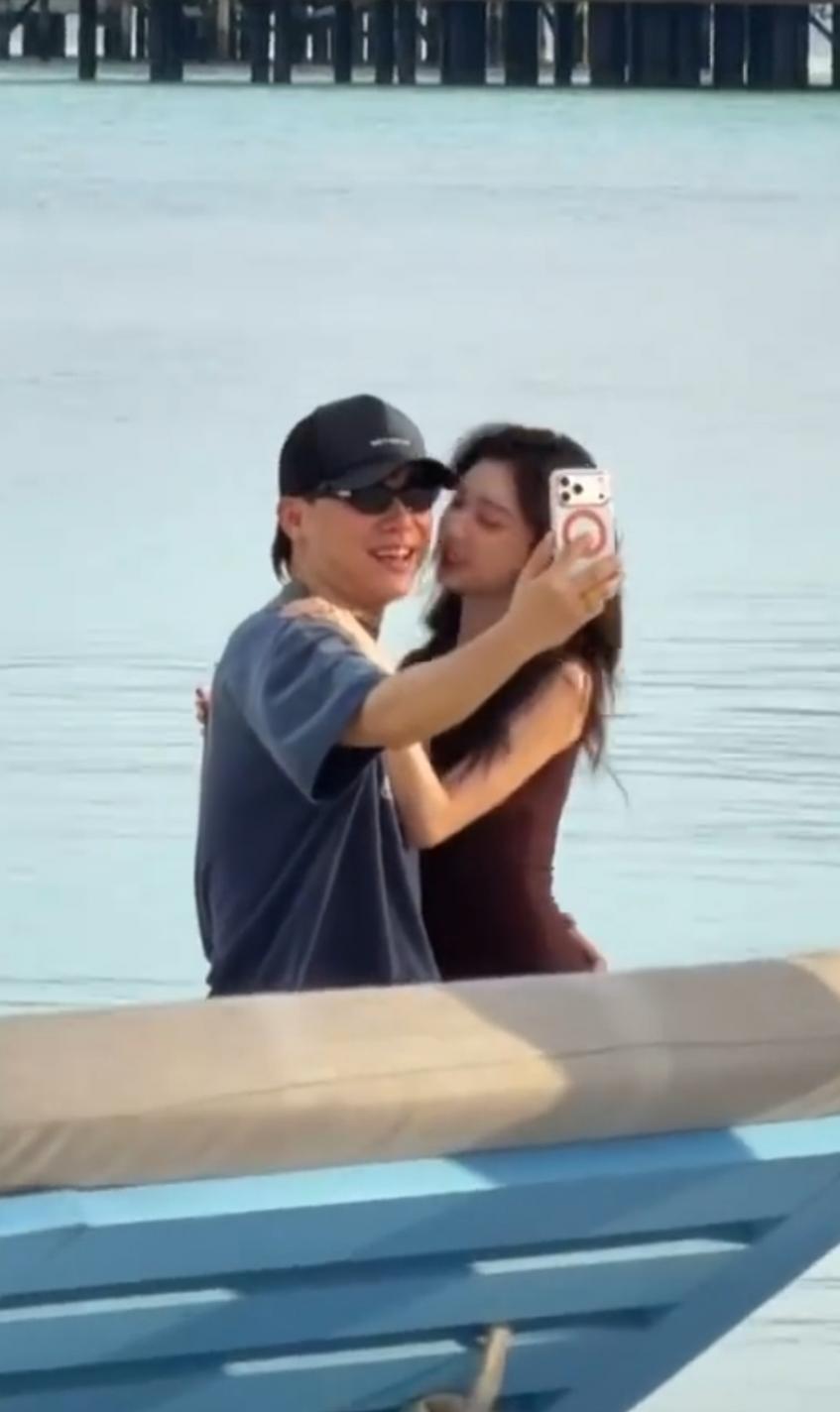居然當(dāng)眾在海邊舉止親密,不僅距離極近、動作曖昧,甚至后來直接接吻。