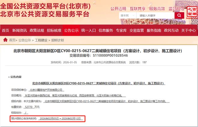 太陽宮的家人們,好消息!近日,小編從北京市公共資源交易服務平臺獲悉:“兩個月前,被9家房企直接 ‘搶瘋了’的太陽宮王炸地塊迎來新動態(tài)!”具體情況快和小編一起來看看吧~