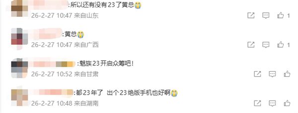 不少網友在黃質潘微博評論區留言稱:"23發布再暫停啊""魅族23開啟眾籌吧""魅族還能重啟手機業務嗎?"